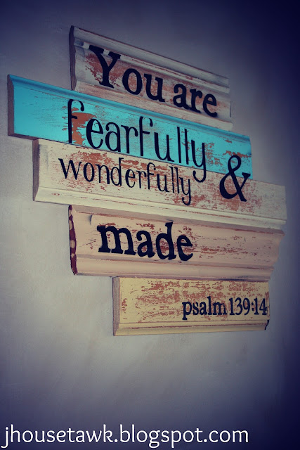 10. With mismatched pieces of leftover wood trim, you can put together a sign like this one from J House Tawk. Check out the easy tutorial for all the details.