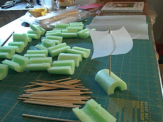 7. Cub scouts rejoice! Here’s another idea for your next Raingutter Regata: pool noodle boats.