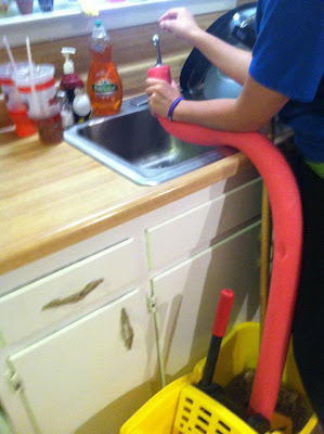 4. Got a mop bucket that’s too big to fit underneath your faucet? Fix that with a simple pool noodle hack.