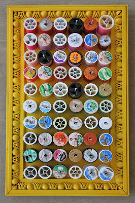 11. Paint an old frame in a bright, fun color, and use it to organize rolls of thread.