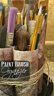 17. Empty paper towel rolls, toilet paper tubes and wrapping paper rolls make a great DIY paint brush holder.